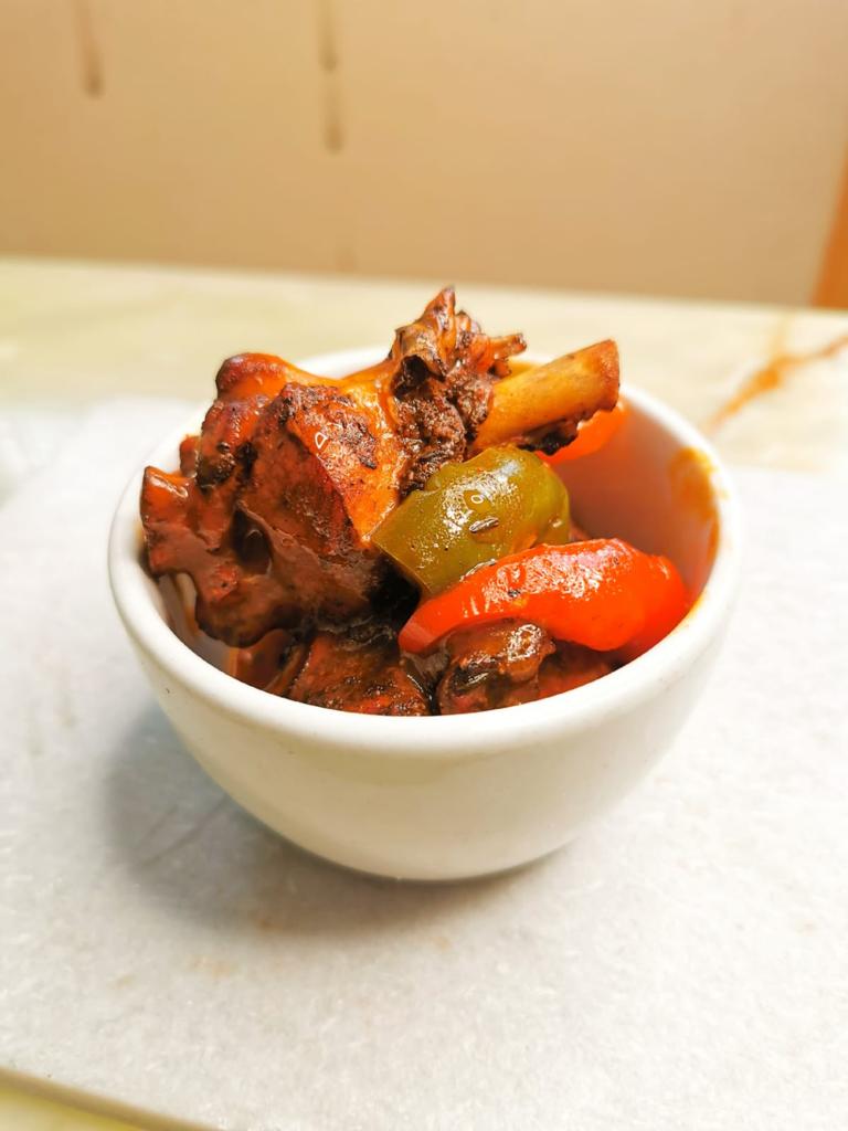 Tender pieces of Goat Mutton marinated in Caribbean spices